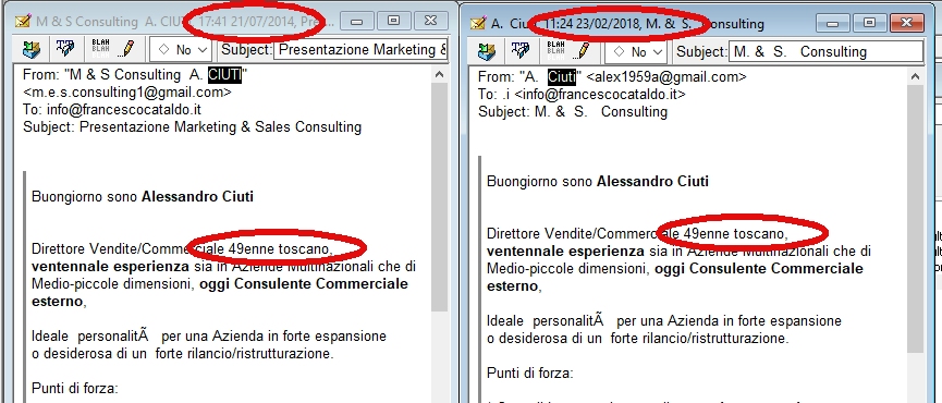 Questo continua a rompere le palle, l’ho anche chiamato dicedogli di smetterla ma niente, insiste, ogni 4/5 mesi, eccolo alessandro ciuti lo spammer